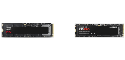 • The Samsung SSD 9100 Pro supports up to 8TB capacities to store massive game libraries and professional media projects on a single drive, while the Samsung 990 Pro supports up to 4TB.